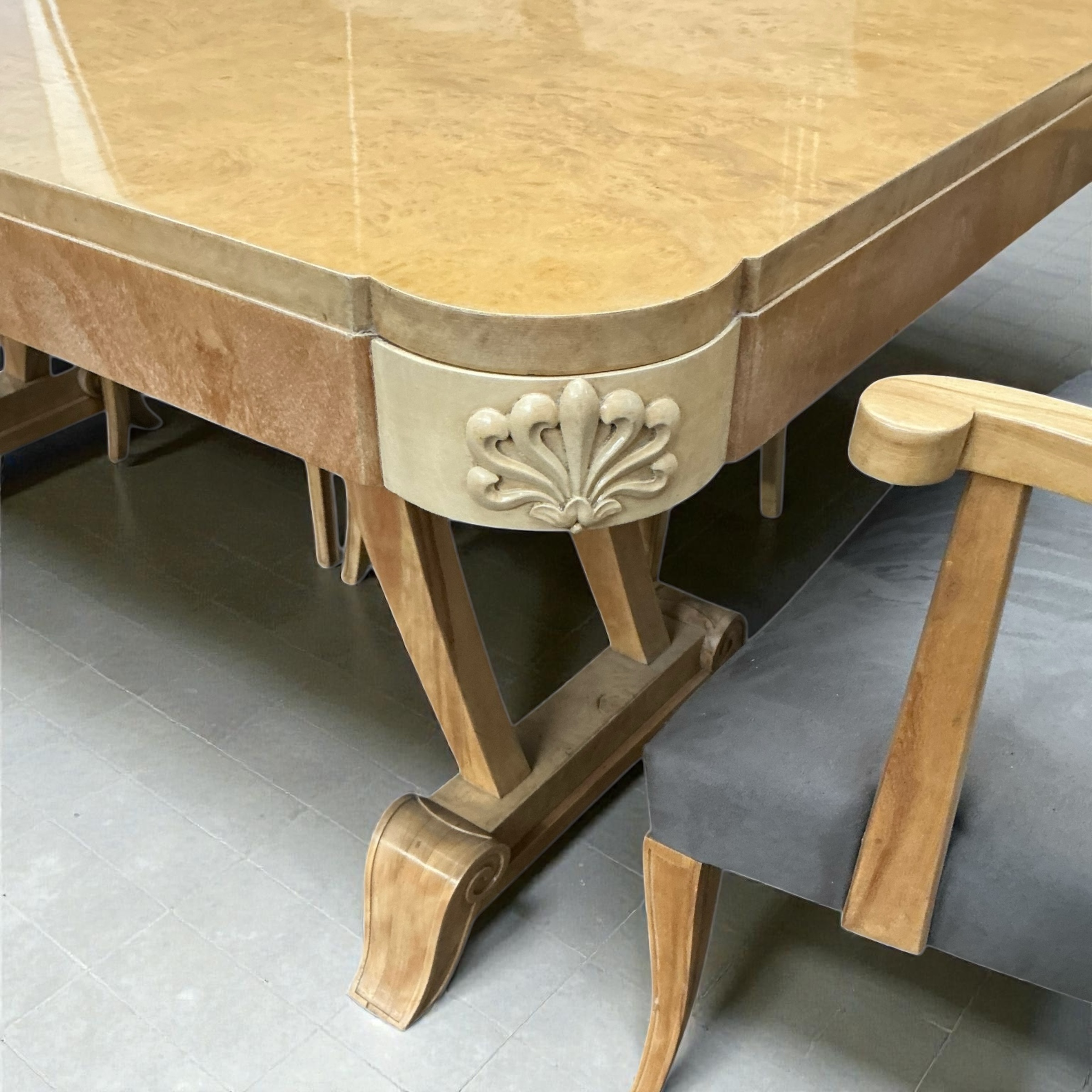 A Fine Art Deco dining table and six chairs designed by Ray Hille for Hille of London.