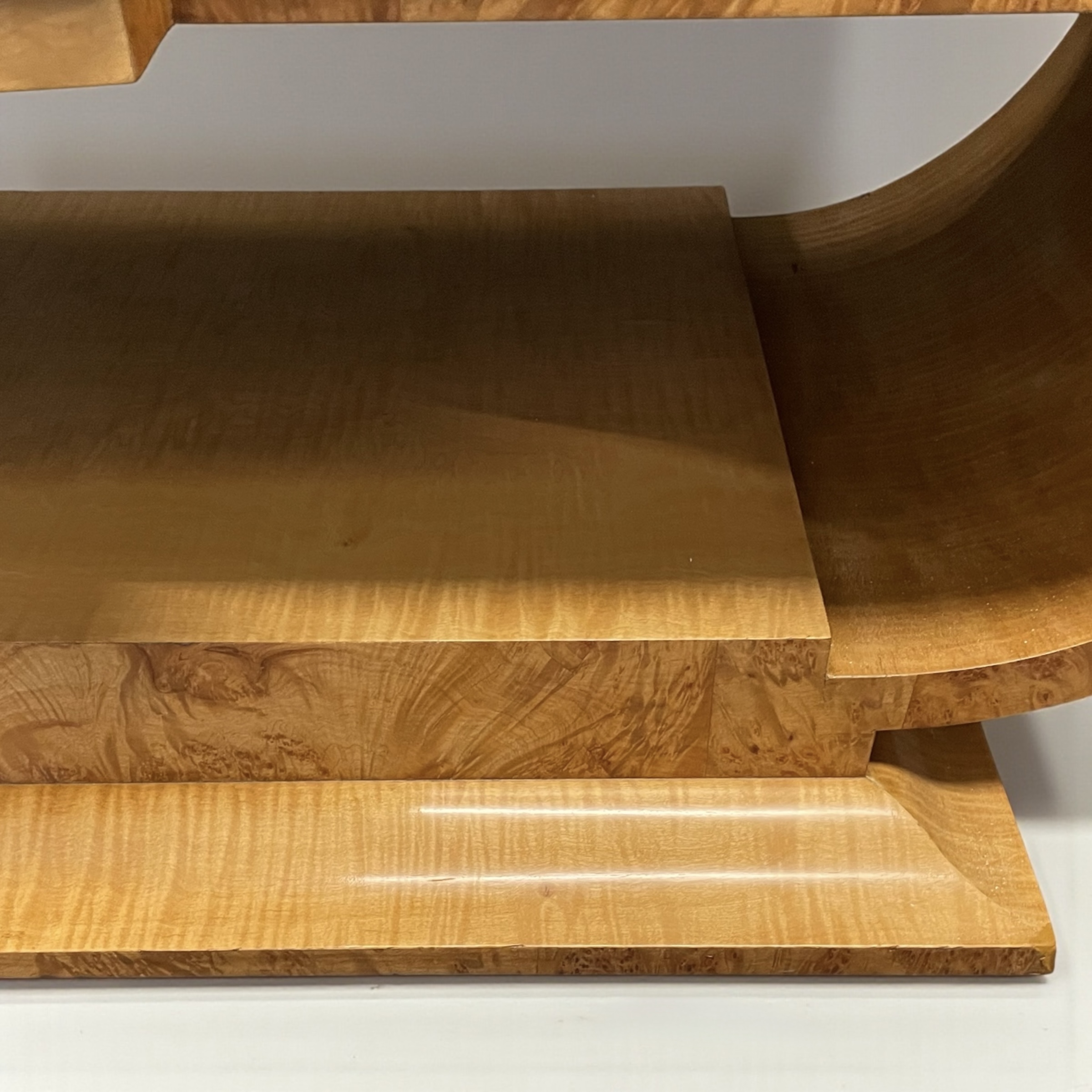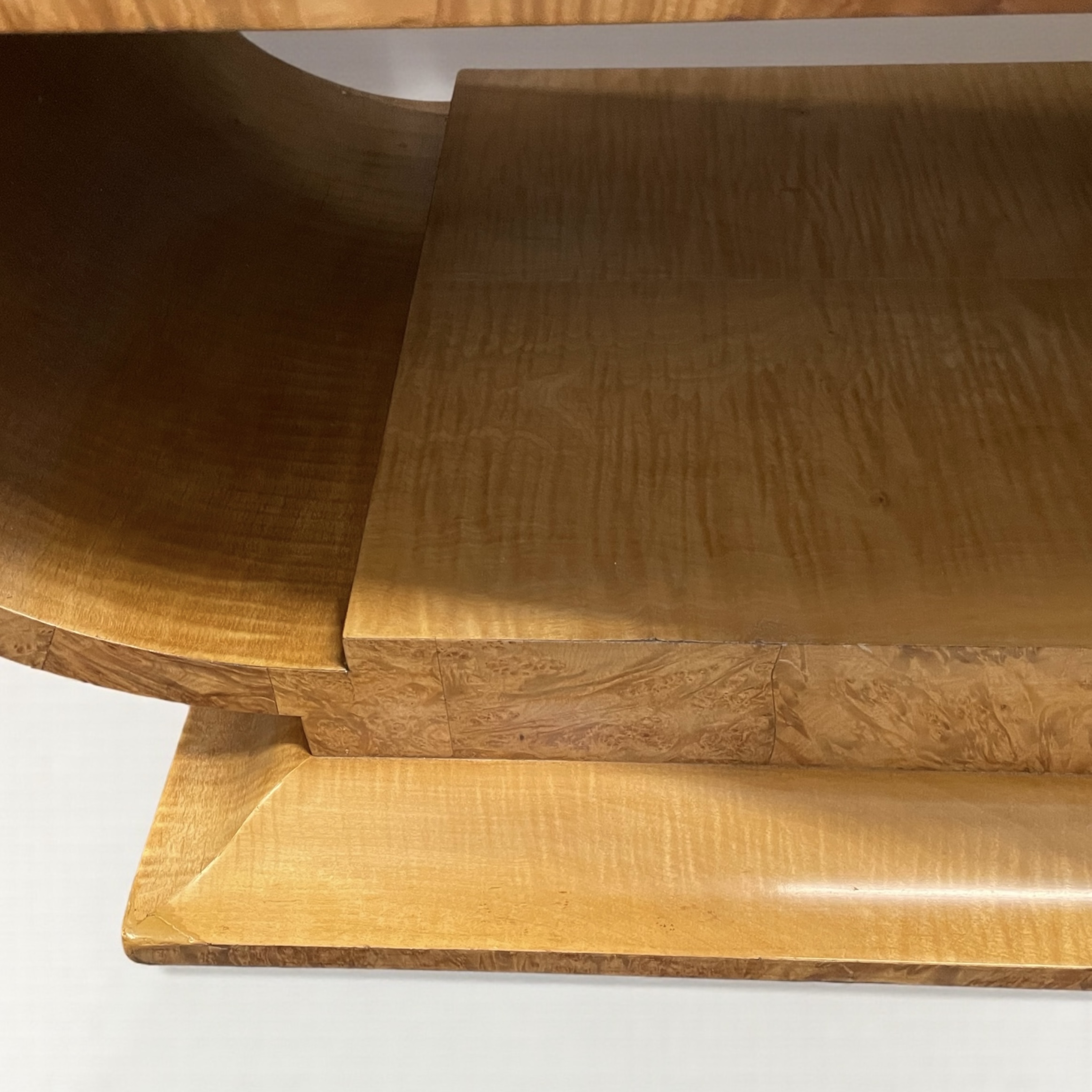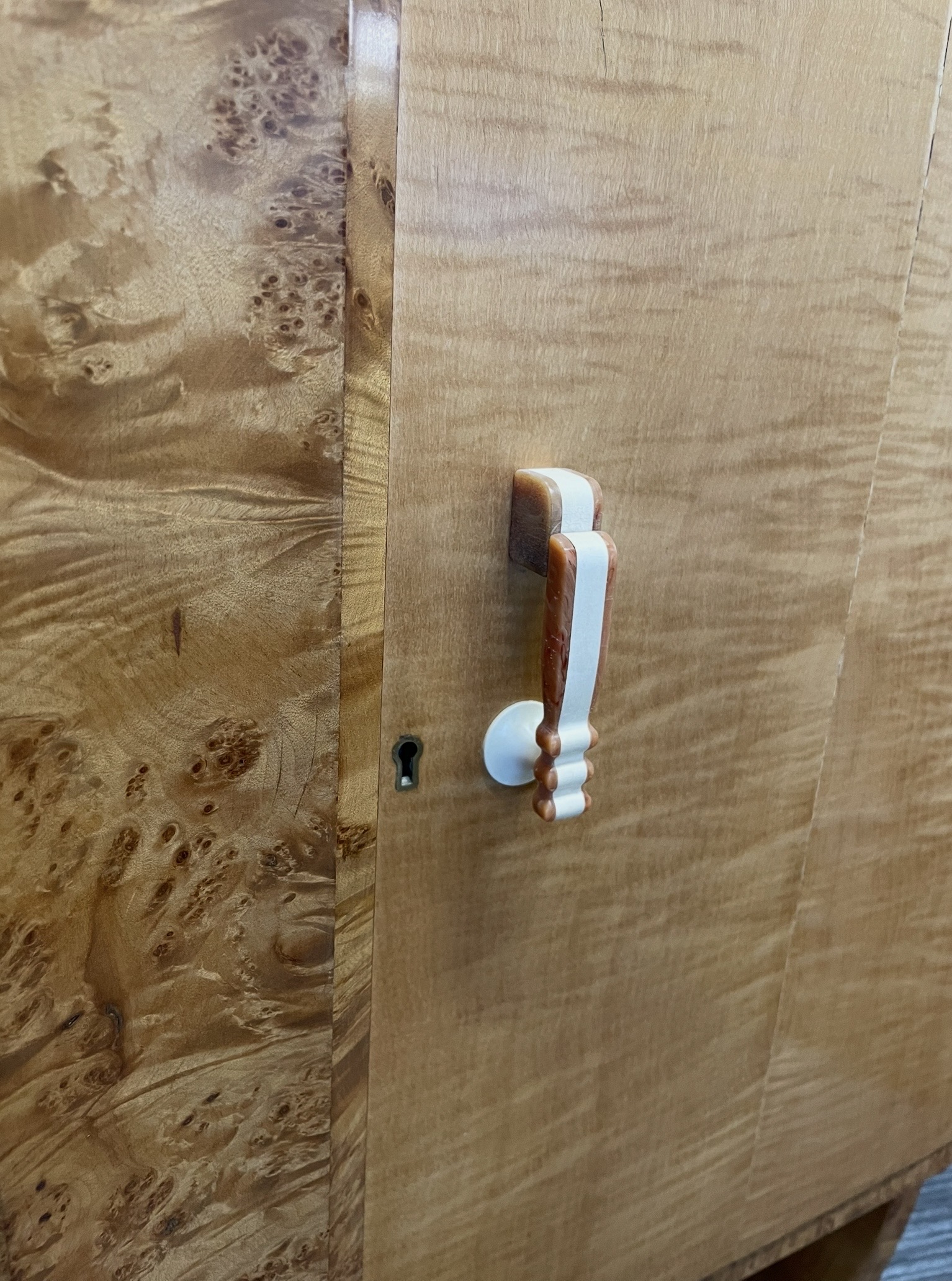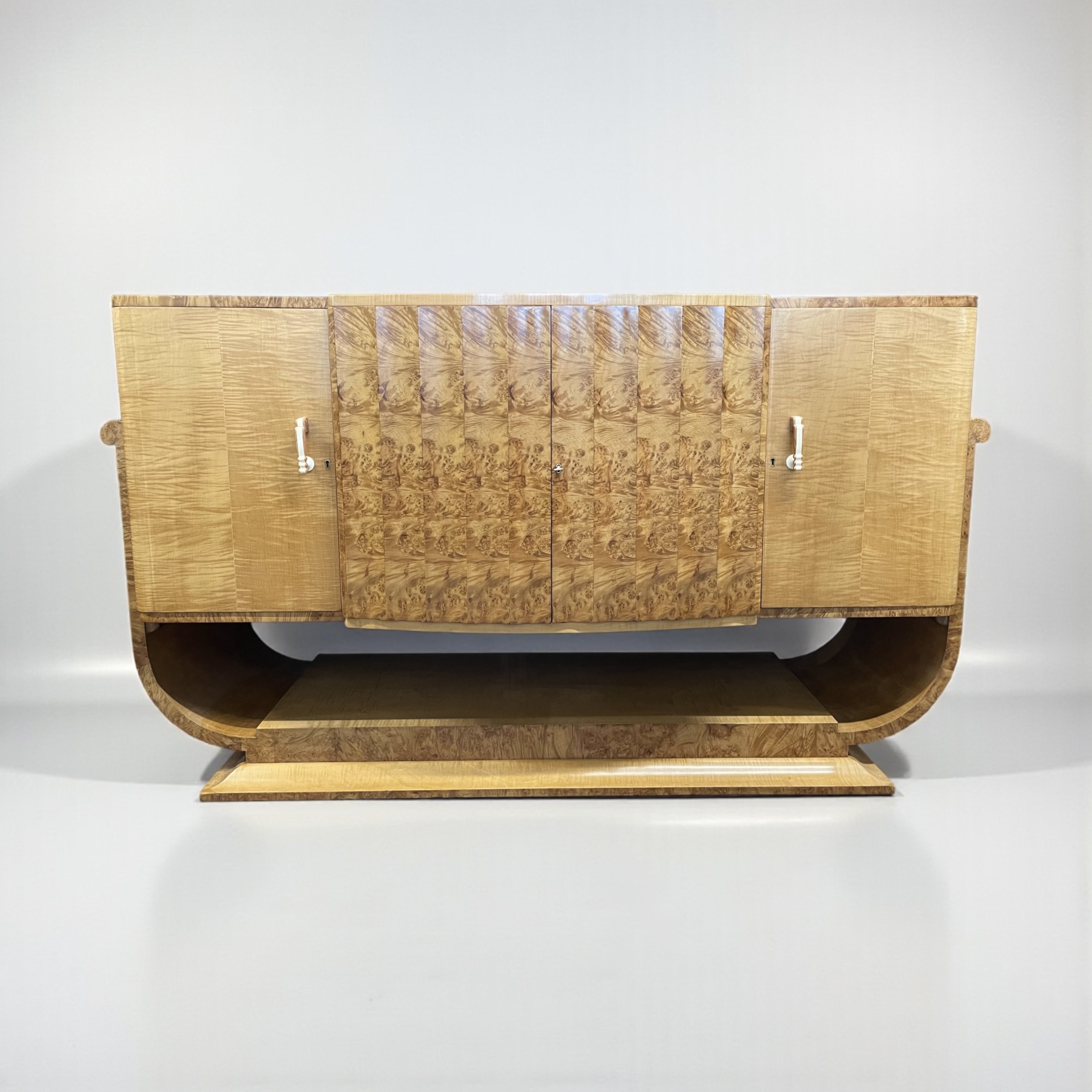 A Fine Art Deco sideboard by Harry and Lou Epstein, in burr walnut and satin birch on solid mahogany.