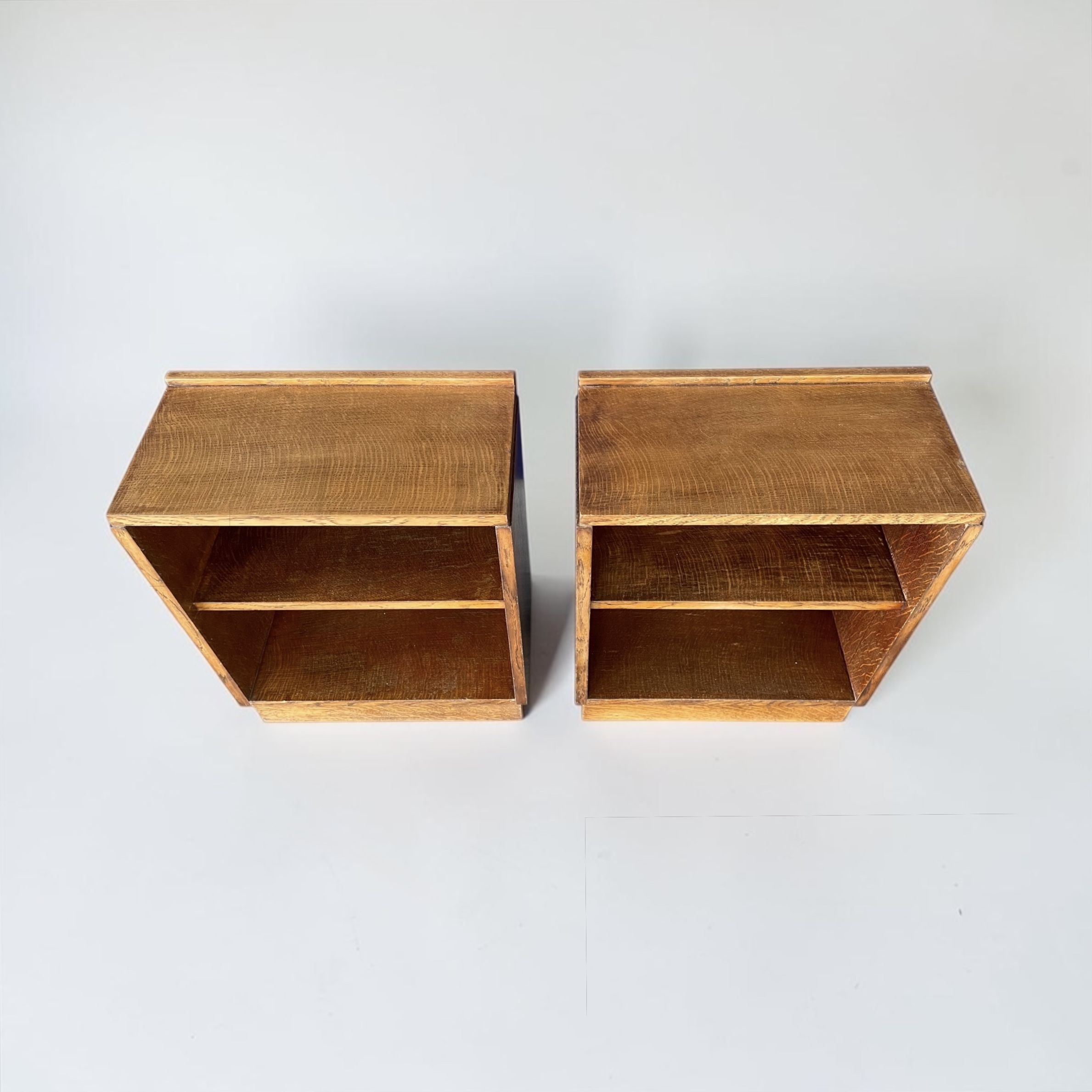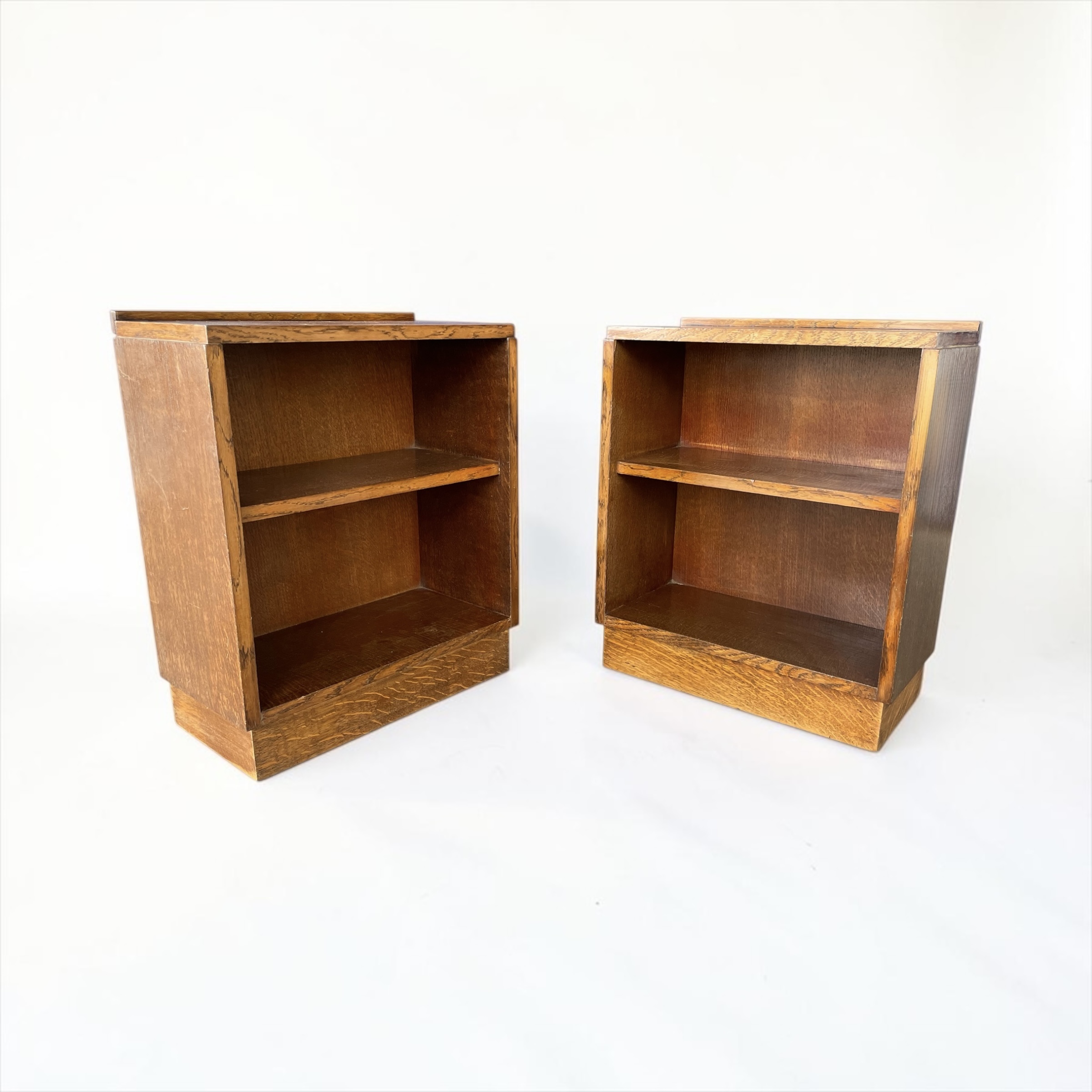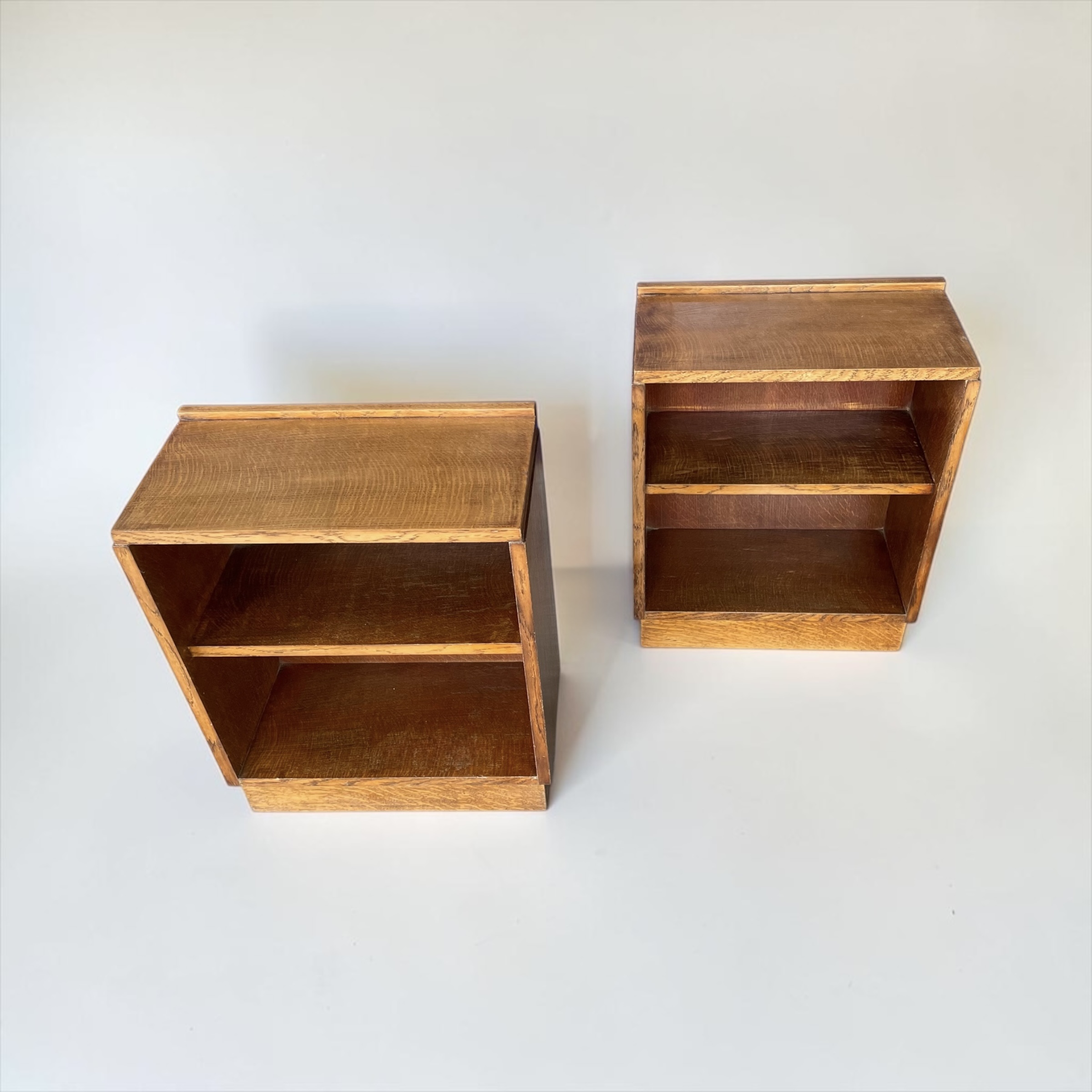 A pair of solid oak bookcases/side tables or sofa tables. These versatile pieces of furniture from the 1930s have been professionally waxed and polished and are in very good condition.