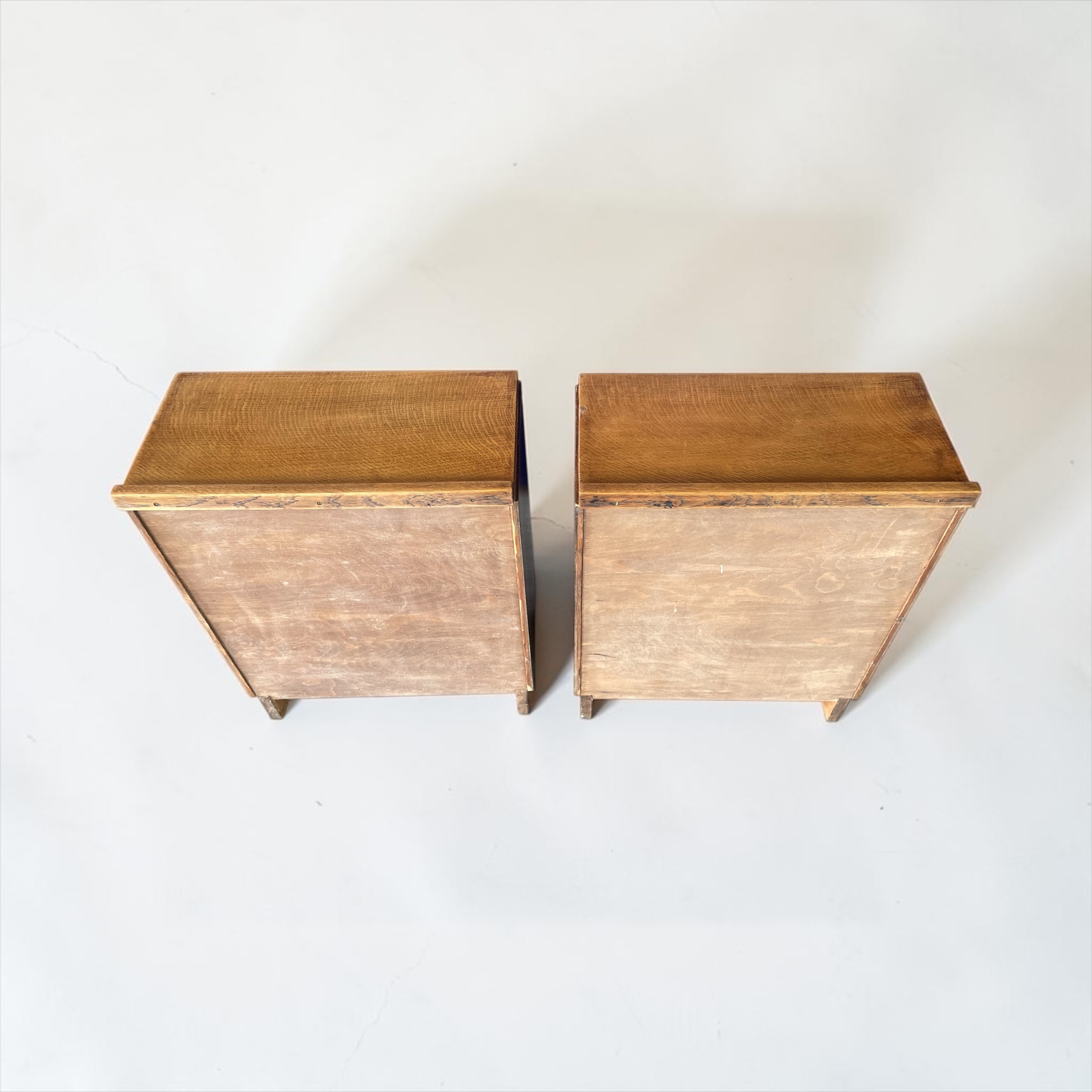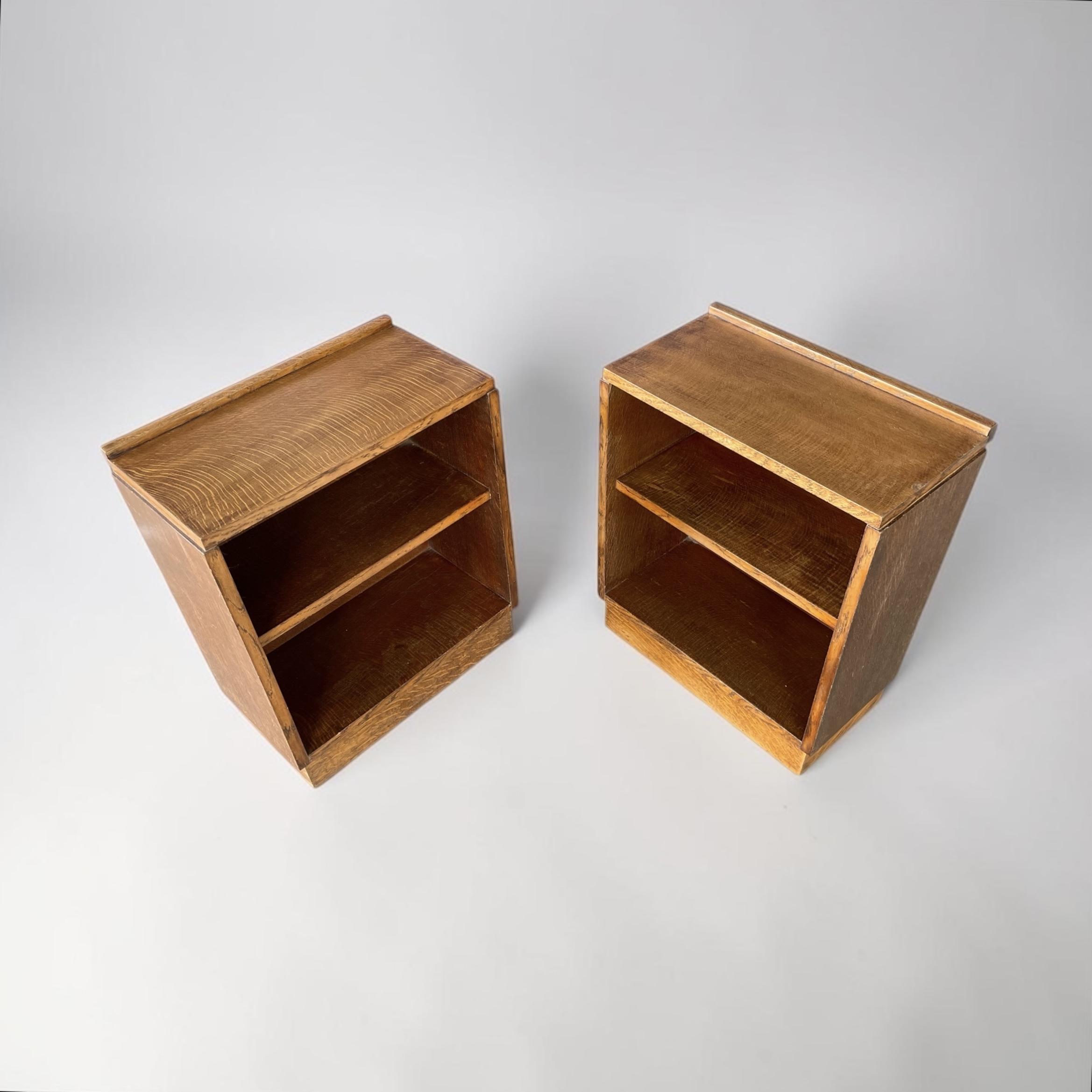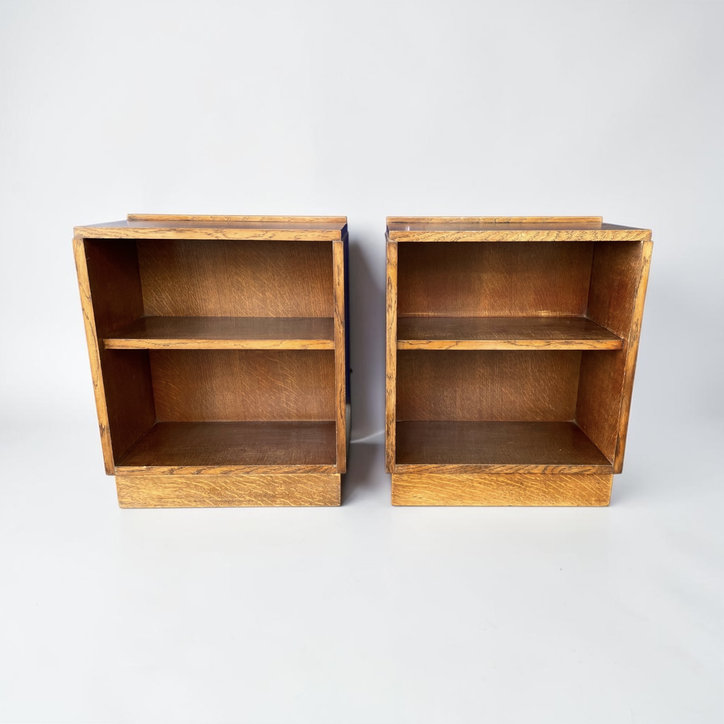 A pair of solid oak bookcases/side tables or sofa tables. These versatile pieces of furniture from the 1930s have been professionally waxed and polished and are in very good condition.
