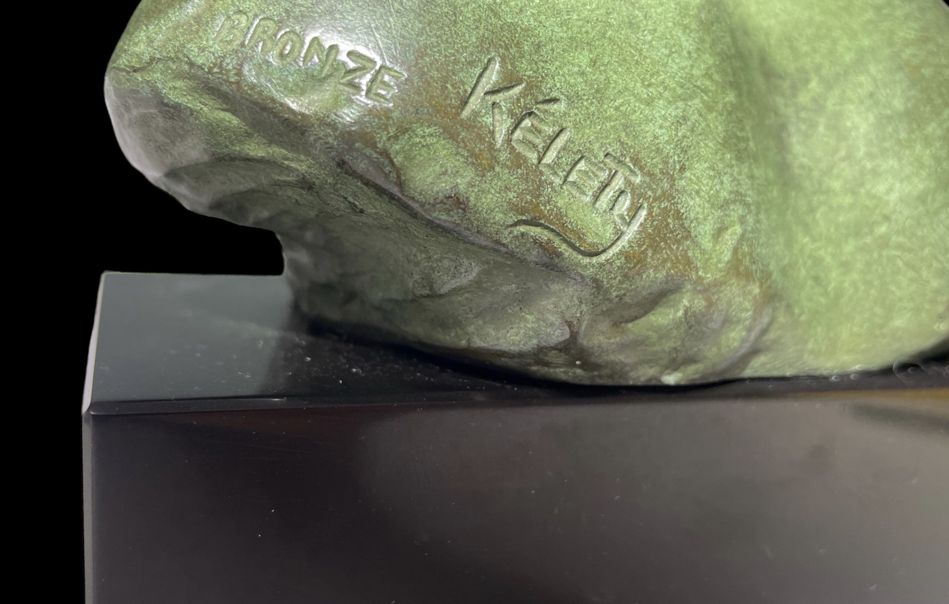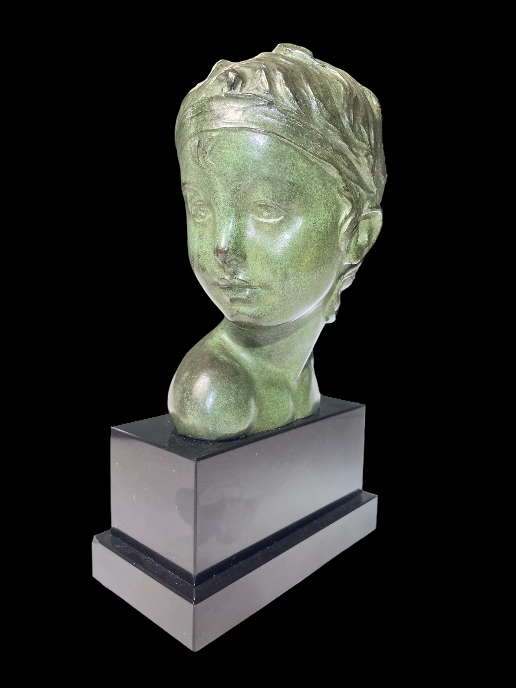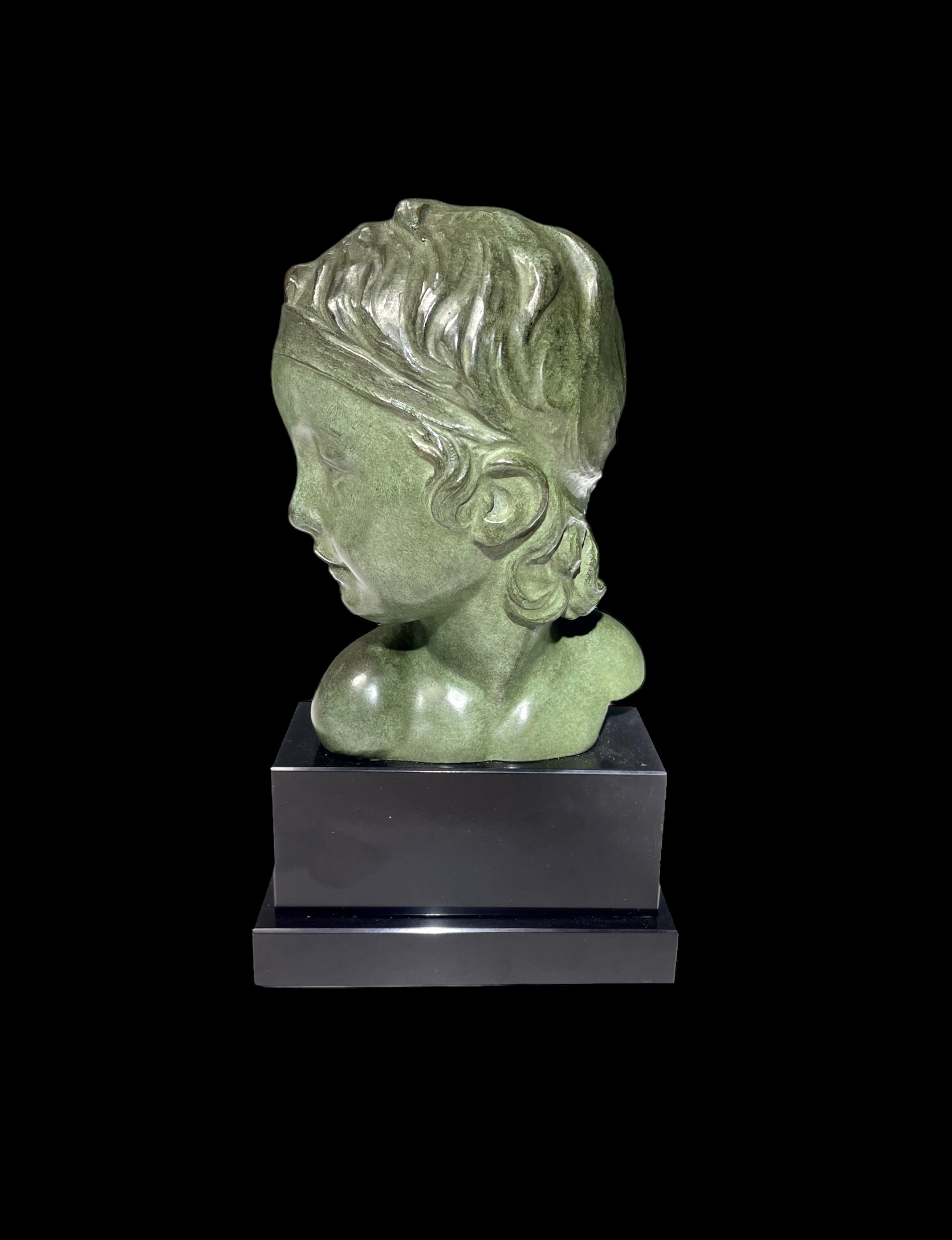 Bronze bust of a youth beautifully modelled by the sculptor Alexandre Kéléty (1918 – 42) and raised on a black stepped rectangular plinth. The bronze marked ‘Bronze’ and ‘ Kélety’.