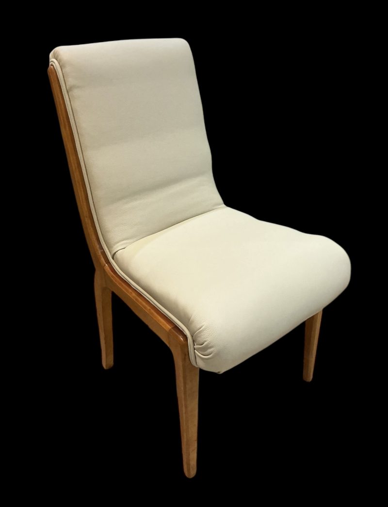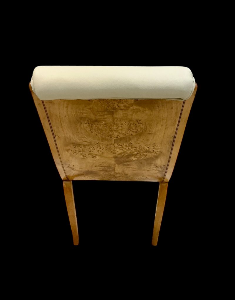 Art Deco chair with a burr maple back and just reupholstered in soft cream leather.