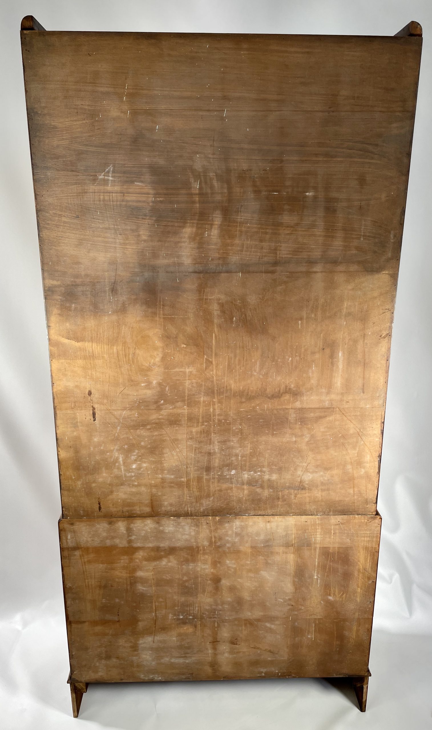 Art Deco walnut bookcase with four shelves behind a pair of glazed doors.