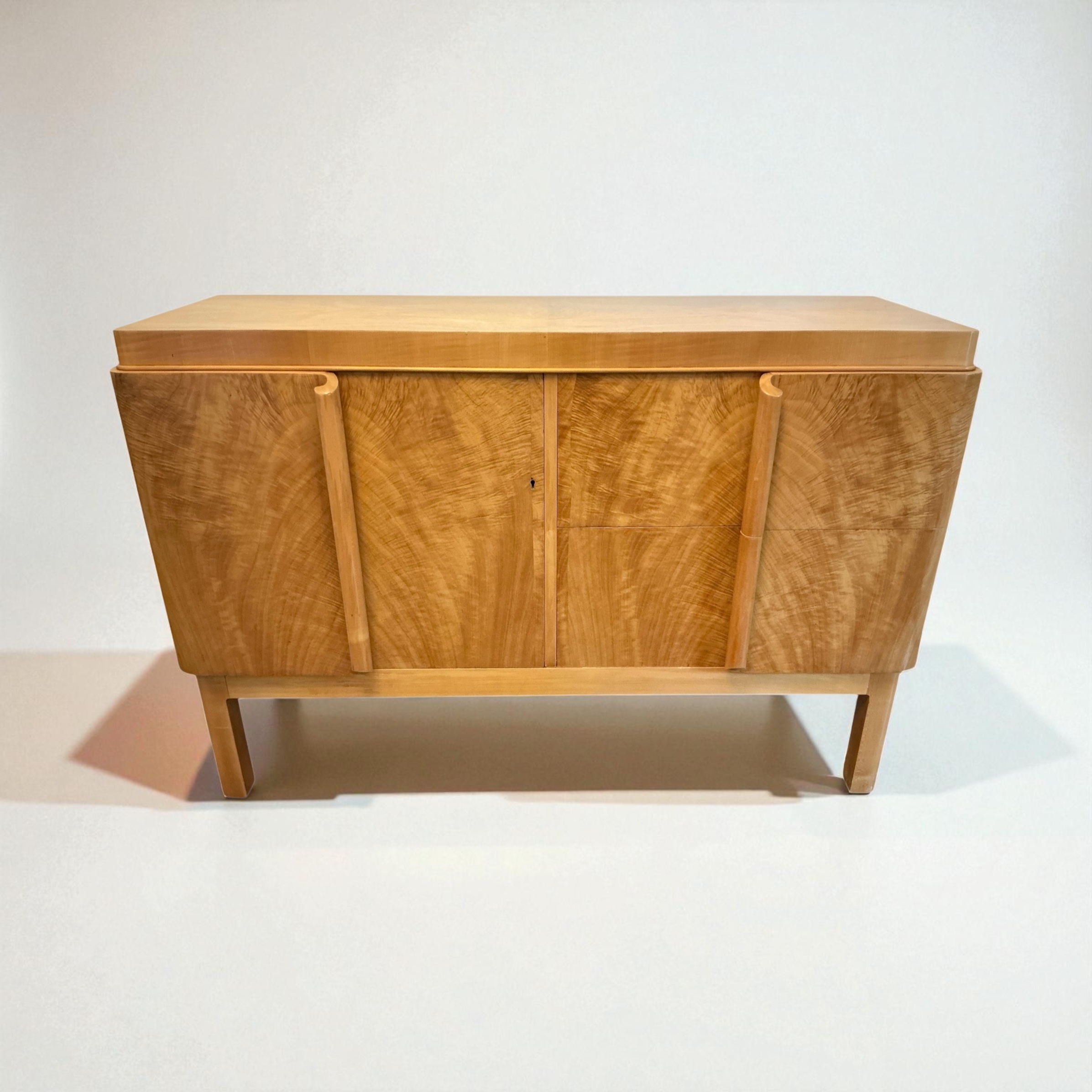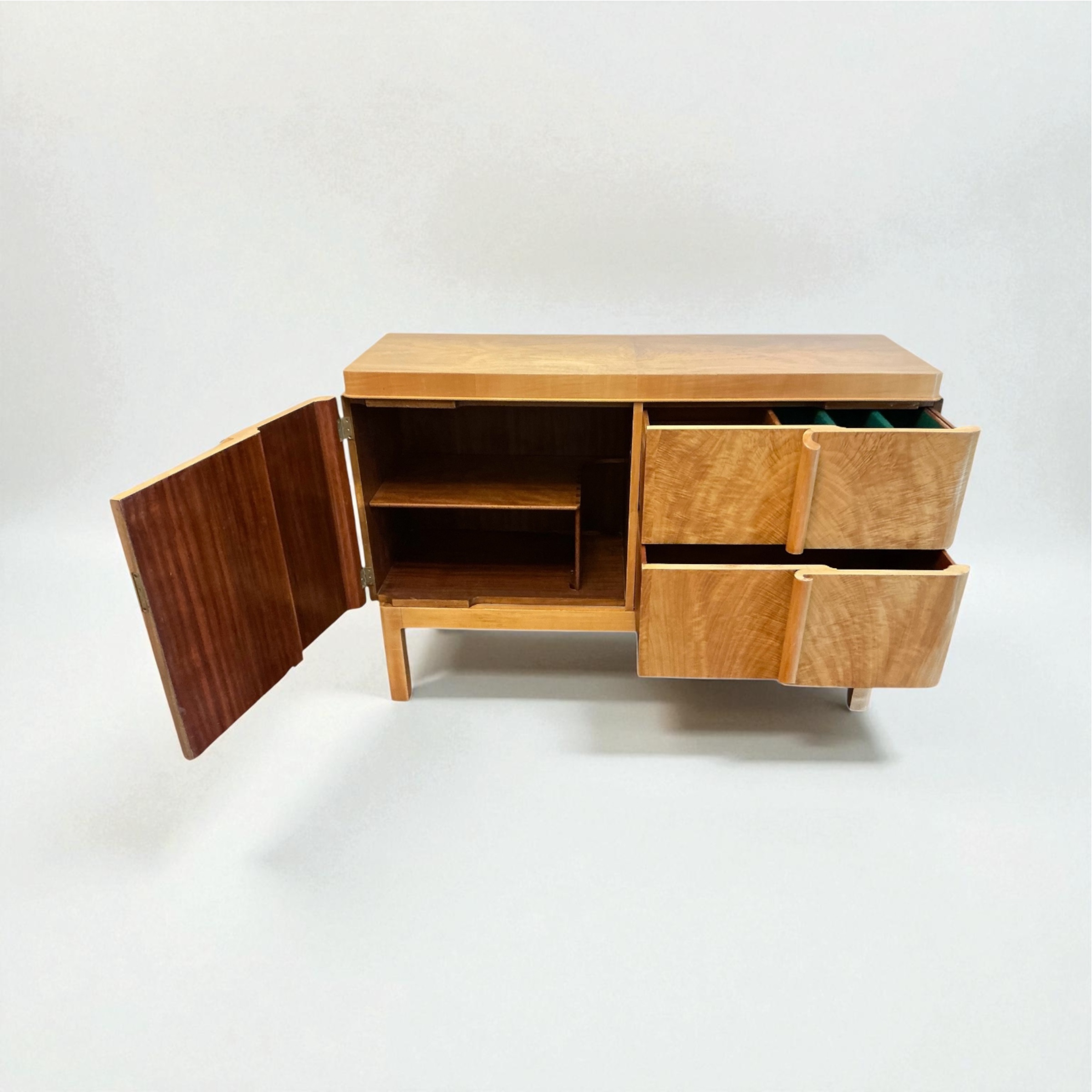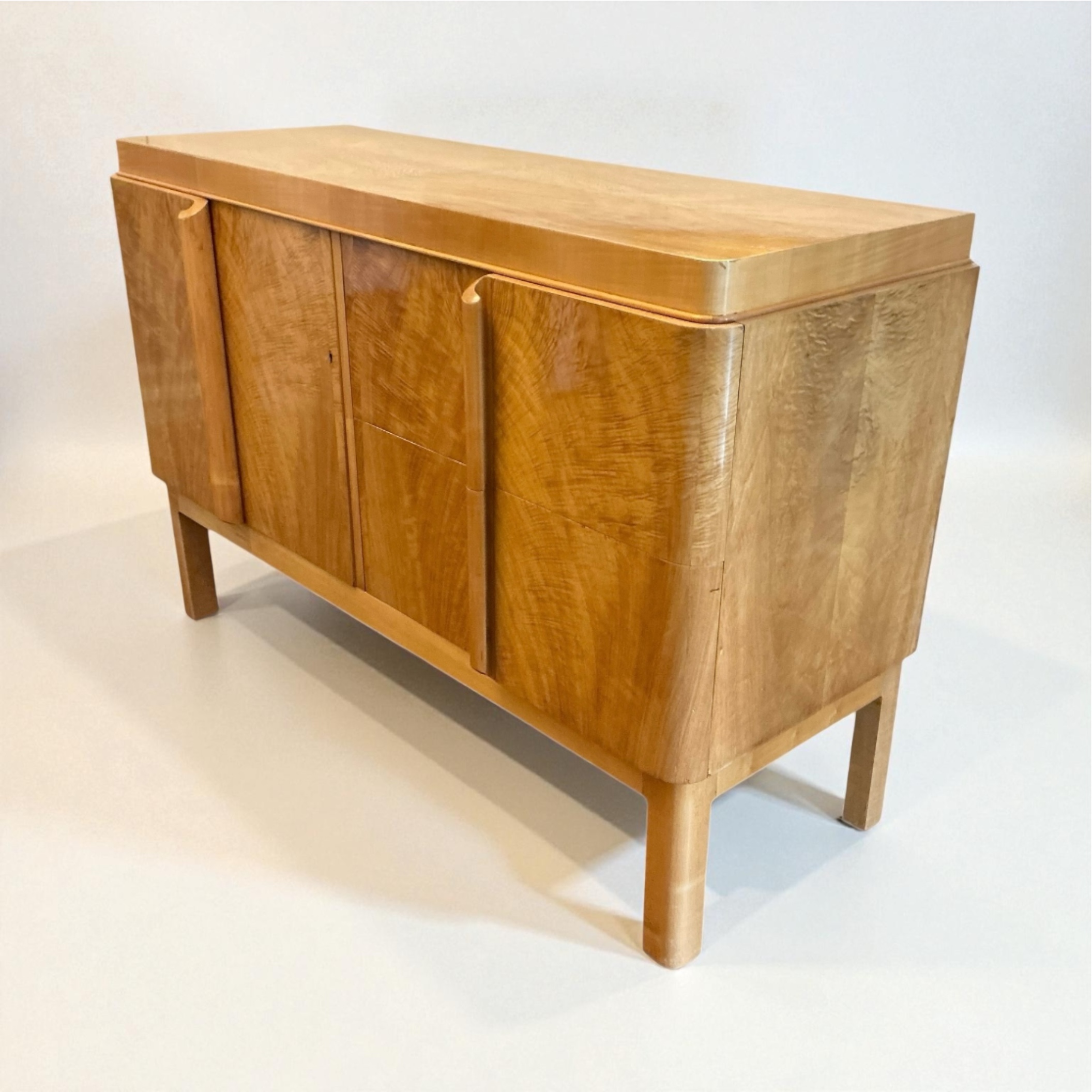 Art Deco maple sideboard retailed through Fortnum and Mason. Other matching items of this suite are found in their 1935 sales catalogue.