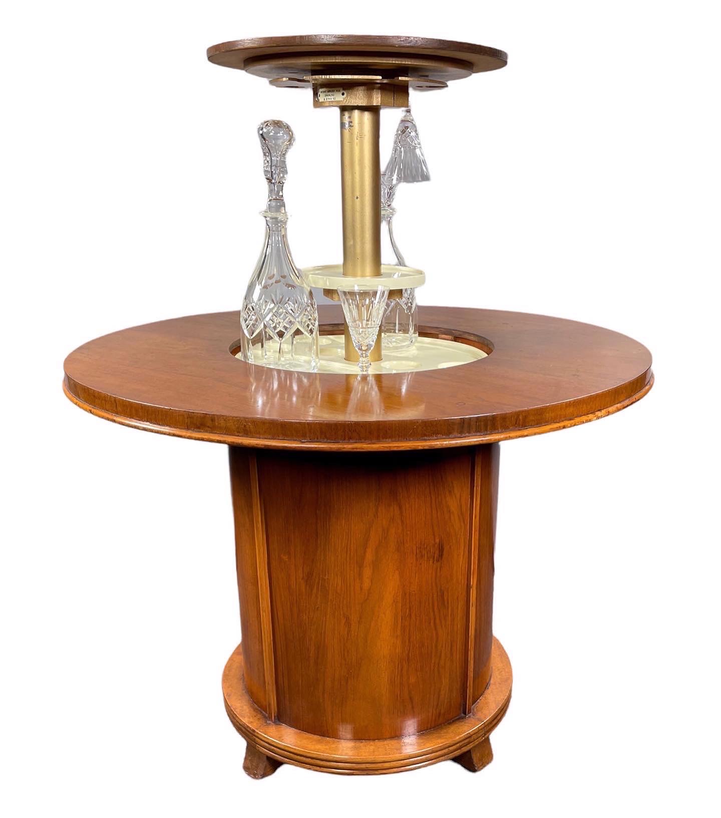 The cocktail area slowly rises when the central button on the tabletop is pressed, revealing space for decanters, drinking glasses, etc.