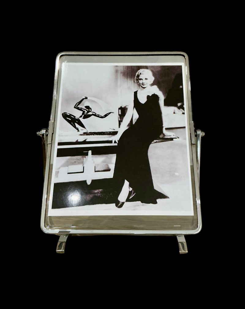 A very large Art Deco Photo Frame in a swivel chrome frame. Two glass panels with the front one bevelled.