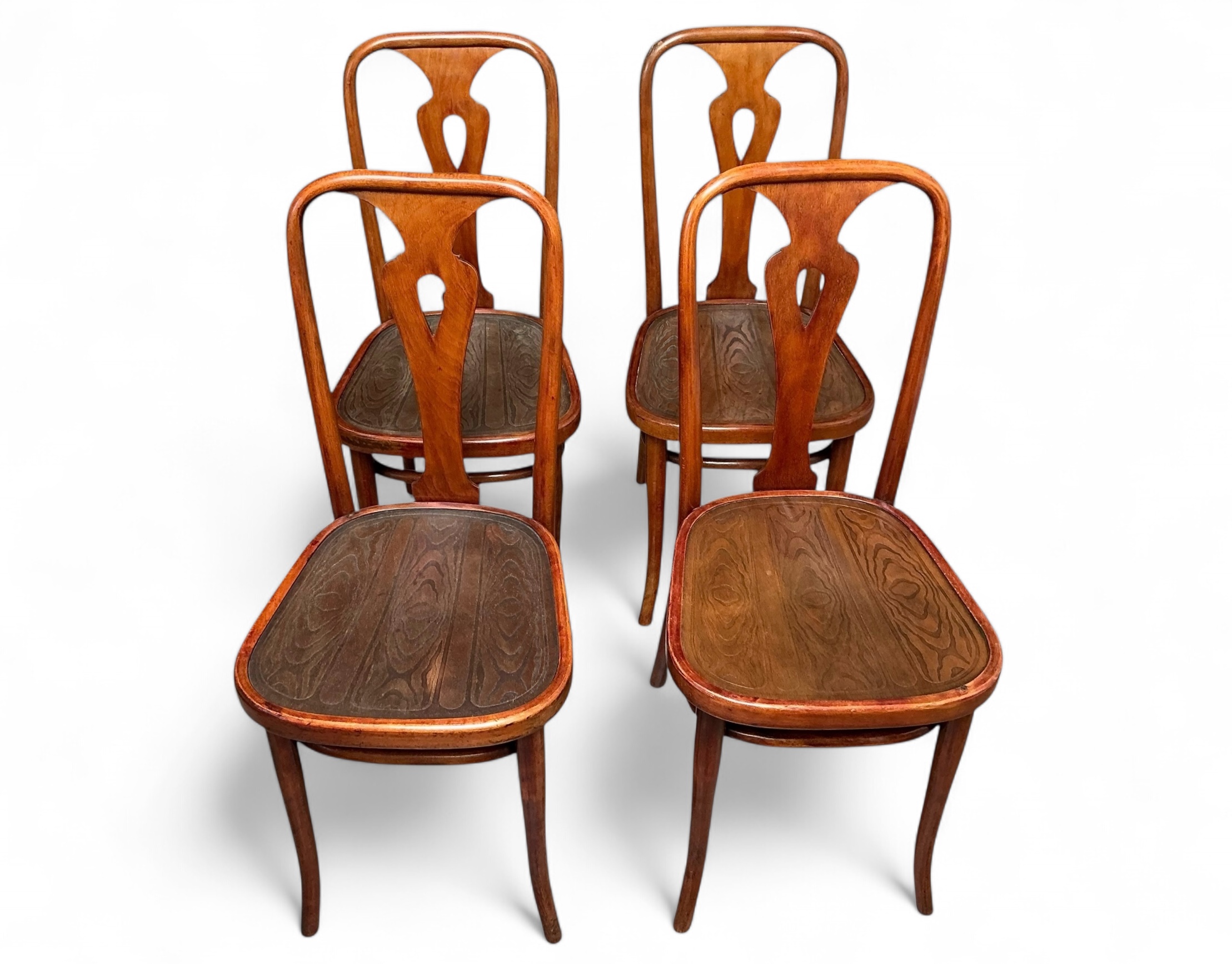 Set of four Thonet Chairs from the 1920s/30’s. Each one sturdy and stable and just one with some wear to each of the two corners of the back, as pictured. The back of this chair though still strong and unlikely to break.
